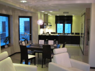 Realizacja łączy minimalizm z mocnym akcentem kontrastowych barw. To doskonałe rozwiązanie dla osób ceniących prostotę w luksusowym wydaniu.