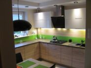 Nowoczesna kuchnia z białymi frontami i zielonym akcentem – KN_E_TR